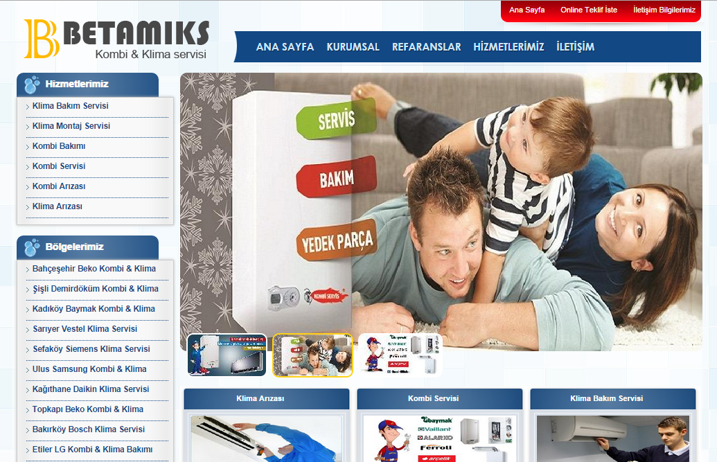 Projelerimiz Anasayfa Projelerimiz Ana sayfa»Projelerimiz»Firma Sitesi»Betamiks Kombi & Klima Servisi « Geri Betamiks Kombi & Klima ServisiWebsitesini Ziyaret EdinKategorisi:Firma SitesiTeknoloji:
